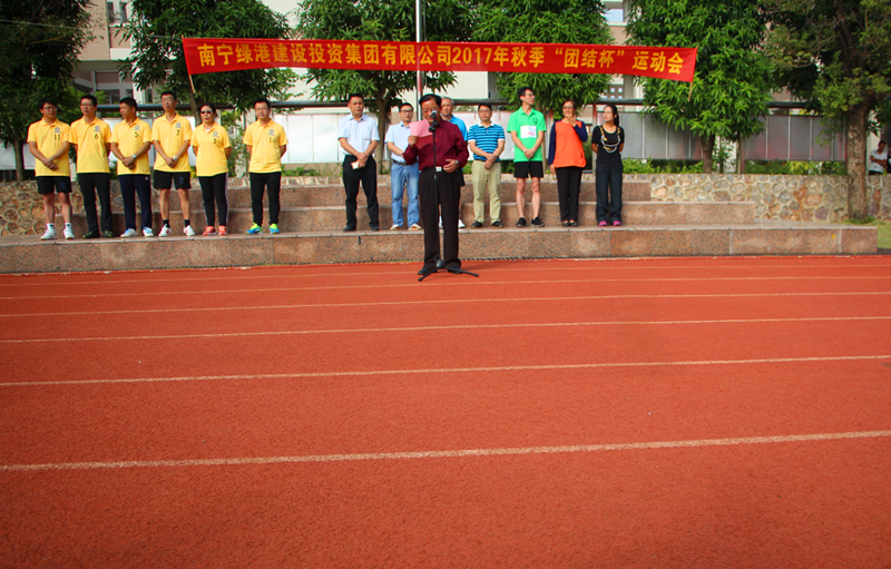 上午9時(shí),運(yùn)動(dòng)會(huì)開幕式準(zhǔn)時(shí)開場(chǎng)。伴隨著《運(yùn)動(dòng)員進(jìn)行曲》,來自綠港集團(tuán)總部及下屬子公司、各受邀平臺(tái)公司的8支代表隊(duì)120名運(yùn)動(dòng)員們邁著矯健的步伐列隊(duì)入場(chǎng)。隨后,綠港集團(tuán)9名青春亮麗的“運(yùn)動(dòng)寶貝”閃亮登場(chǎng),跳起激情四射的啦啦操,將活動(dòng)的氛圍推向了高潮。運(yùn)動(dòng)員代表、裁判員分別宣誓,綠港集團(tuán)董事長(zhǎng)、總經(jīng)理龔國(guó)強(qiáng)致開幕詞。隨后廖勇副主任作了熱情洋溢的講話,他要求各參賽隊(duì)要精心組織,嚴(yán)守紀(jì)律,賽出友誼、風(fēng)格和水平。最后,經(jīng)開區(qū)黨工委副書記覃傳財(cái)代表黨工委、管委會(huì)對(duì)運(yùn)動(dòng)會(huì)的召開表示祝賀,他希望四家平臺(tái)公司干部職工凝心聚力,以兄弟般的感情,在十九大精神的引領(lǐng)下,為經(jīng)開區(qū)的發(fā)展譜寫新輝煌!在全體運(yùn)動(dòng)員的熱切期待下,覃傳財(cái)副書記宣布運(yùn)動(dòng)會(huì)開幕,充滿激情與挑戰(zhàn)的運(yùn)動(dòng)會(huì)正式拉開帷幕。