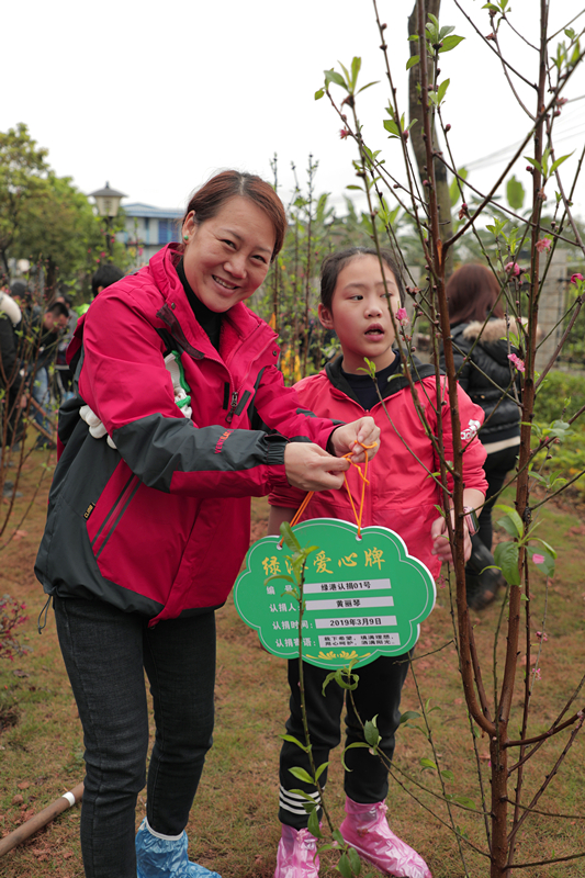當(dāng)天,綠港集團(tuán)還舉行了植樹護(hù)綠活動(dòng)。在細(xì)雨紛飛中,家長和孩子們一起動(dòng)手,分工協(xié)作。大家栽得認(rèn)真,干得賣力,揮鍬鏟土、挖坑、栽樹、蓋土、澆水,各個(gè)環(huán)節(jié)銜接有序,配合默契。整個(gè)植樹活動(dòng)現(xiàn)場熱火朝天,歡聲笑語不絕于耳。經(jīng)過一個(gè)多小時(shí)的揮汗奮戰(zhàn),上百棵小樹苗整齊的“站”在了綠港·國際中心桃樹林中。放眼望去,樹苗迎風(fēng)挺立、搖曳生姿,大家看著這一片自己親手種下的樹苗,無不露出幸福的笑容,紛紛與小樹苗合影。綠港集團(tuán)下屬榮鑫公司副總經(jīng)理唐欽月表示:“植樹造林是一項(xiàng)利于當(dāng)代、造福子孫的偉大工程。綠港集團(tuán)成立五年來,每年都積極組織員工開展義務(wù)植樹造林活動(dòng)。今天我們帶上孩子一起參加義務(wù)植樹活動(dòng),不僅增強(qiáng)了職工們生態(tài)環(huán)境保護(hù)的責(zé)任感,也給孩子們樹立了關(guān)心、愛護(hù)以及主動(dòng)參與家園建設(shè)的意識(shí)和榜樣?!?nbsp;