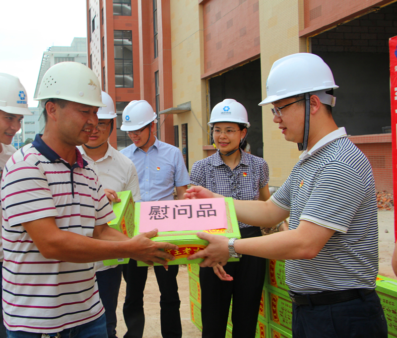 集團黨委書記、董事長、總經(jīng)理龔國強為項目一線人員送上清涼慰問品