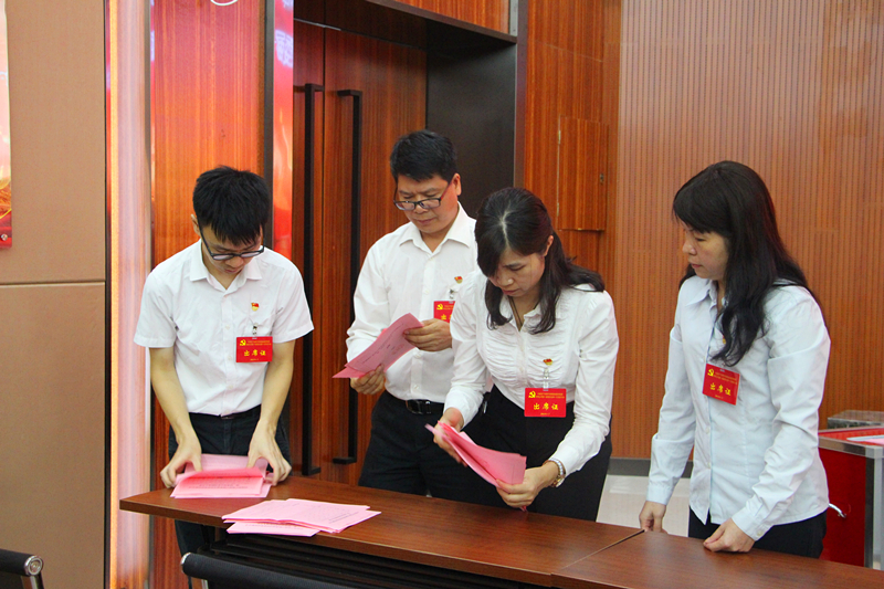上午八點十分,大會全體工作人員提前到位,大會籌備會務組人員整齊地擺放好簽到表、出席證、嘉賓證和列席證,做好迎接大會的準備。計票人、監(jiān)票人會前碰頭,明確分工任務。