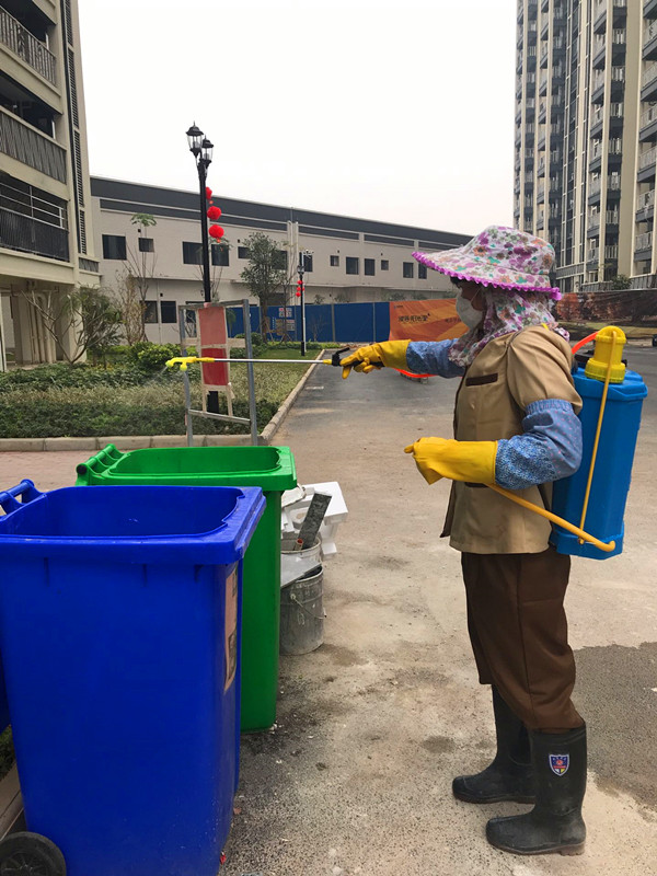 萬(wàn)方物業(yè)公司正在對(duì)園區(qū)進(jìn)行消毒消殺
