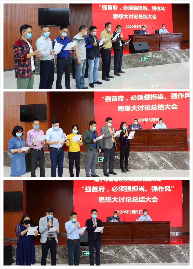 最后,集團黨委書記、董事長龔國強對本次思想大討論活動開展情況進行了總結點評,并要求各部門、各子公司認真踐行諾言,落實落細措施,確保取得良好成效。龔書記表示,當前疫情形勢依然嚴峻復雜,全國各地都在做好疫情防控的前提下,出臺了一系列政策措施,搶開局、穩(wěn)經(jīng)濟、促發(fā)展。綠港集團在疫情防控的關鍵時刻召開這次總結會,就是要進一步營造一心一意謀發(fā)展的濃厚氛圍,形成全力以赴落實強首府戰(zhàn)略的強烈共識,傳遞出疫情防控和經(jīng)濟發(fā)展兩手抓、兩手都要硬的鮮明導向和強烈信號,為實現(xiàn)集團公司高質(zhì)量發(fā)展的“加速度”,全力以赴完成好新的一年集團公司的各項發(fā)展任務目標。作為經(jīng)開區(qū)最大的平臺公司,2020年年初以來,綠港集團緊緊圍繞“強首府,必須強擔當、強作風”的總體要求,著重在“學精神、查不足、求改變、強擔當”上下功夫,針對如何解決六個方面突出問題、如何克服十種突出現(xiàn)象以及如何在八種情形下運用容錯糾錯機制,結合工作實際,群策群力開展了三次專題思想大討論活動,通過查深、查透、立行立改,有力轉變了作風,進一步提高了干部職工的緊迫感、使命感,為全面落實強首府戰(zhàn)略,奮力譜寫集團公司高質(zhì)量發(fā)展新篇章凝聚了共識,集聚了動力。
