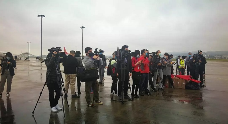 媒體早早到來南寧吳圩機場,靜候英雄凱旋。