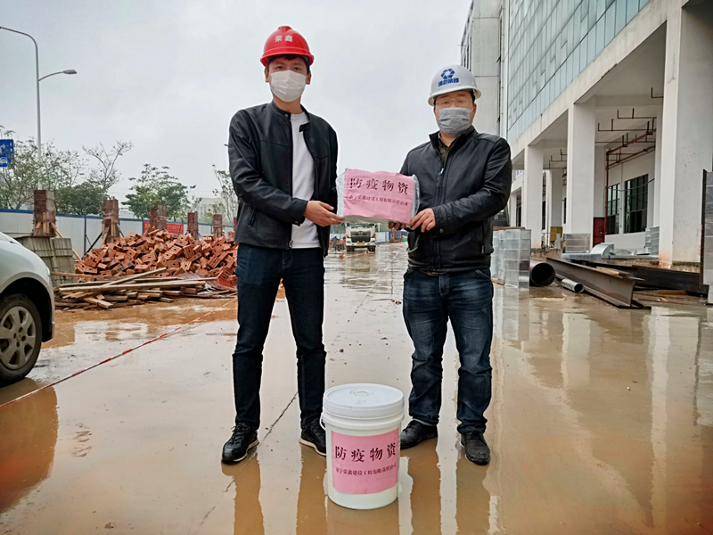 榮鑫公司副總經(jīng)理黎杰代表公司到項(xiàng)目現(xiàn)場送上防疫物資